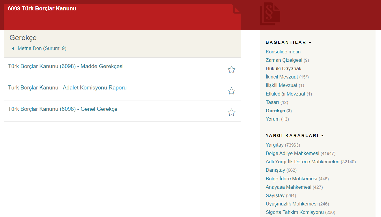 - Bir düzenlemenin Genel Gerekçesi, Madde Gerekçeleri ve Komisyon Raporlarına kolayca ulaşabilirsiniz.