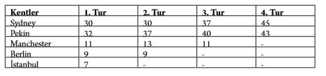Tablo 33. 2008 Olimpiyat Oyunları Aday Kentler Oylaması ve Aday Adayı Kentler…